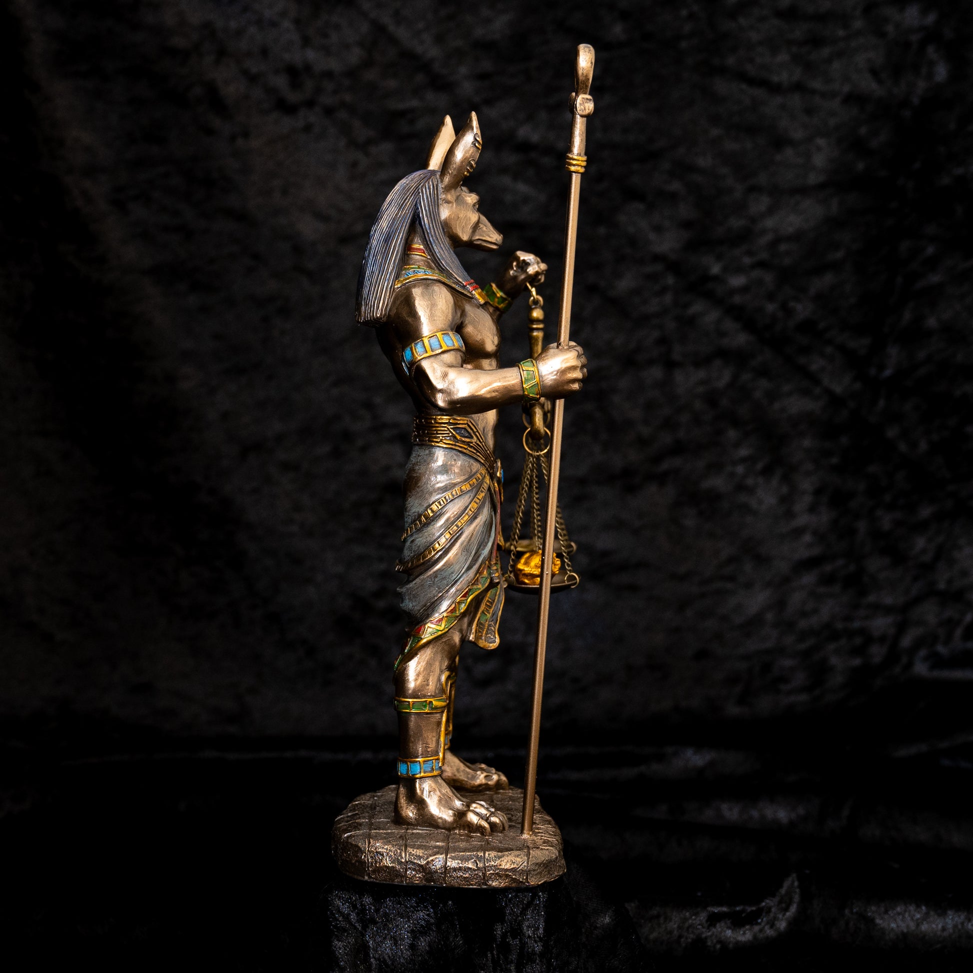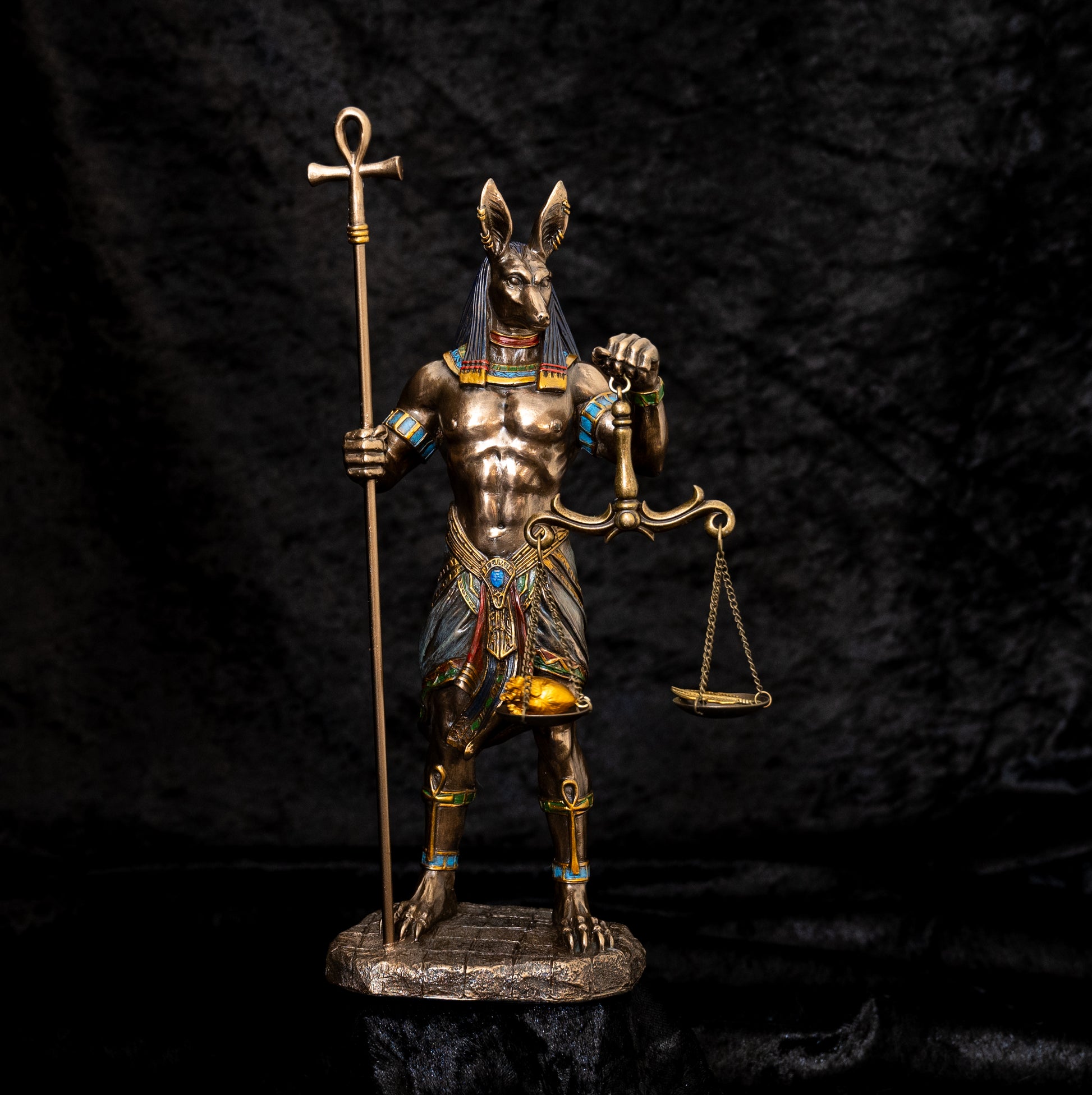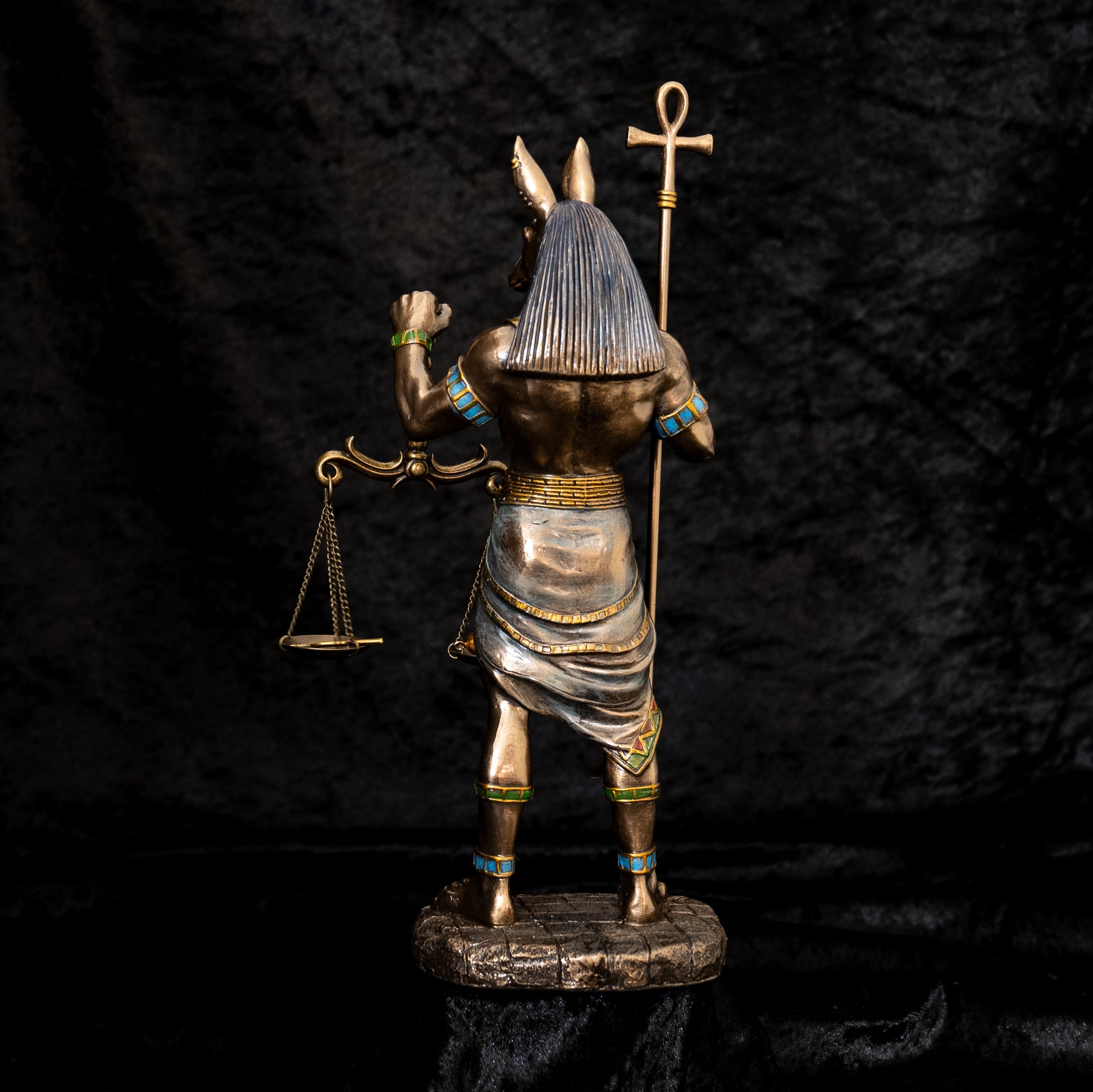Anubis stands as one of the most venerated figures in Egyptian mythology, revered as the protector of the dead and the guide of souls on their journey to the afterlife. This statue embodies Anubis’s commanding presence and protective essence, making it a profound symbol of justice, safeguarding, and the sacred transition between worlds.